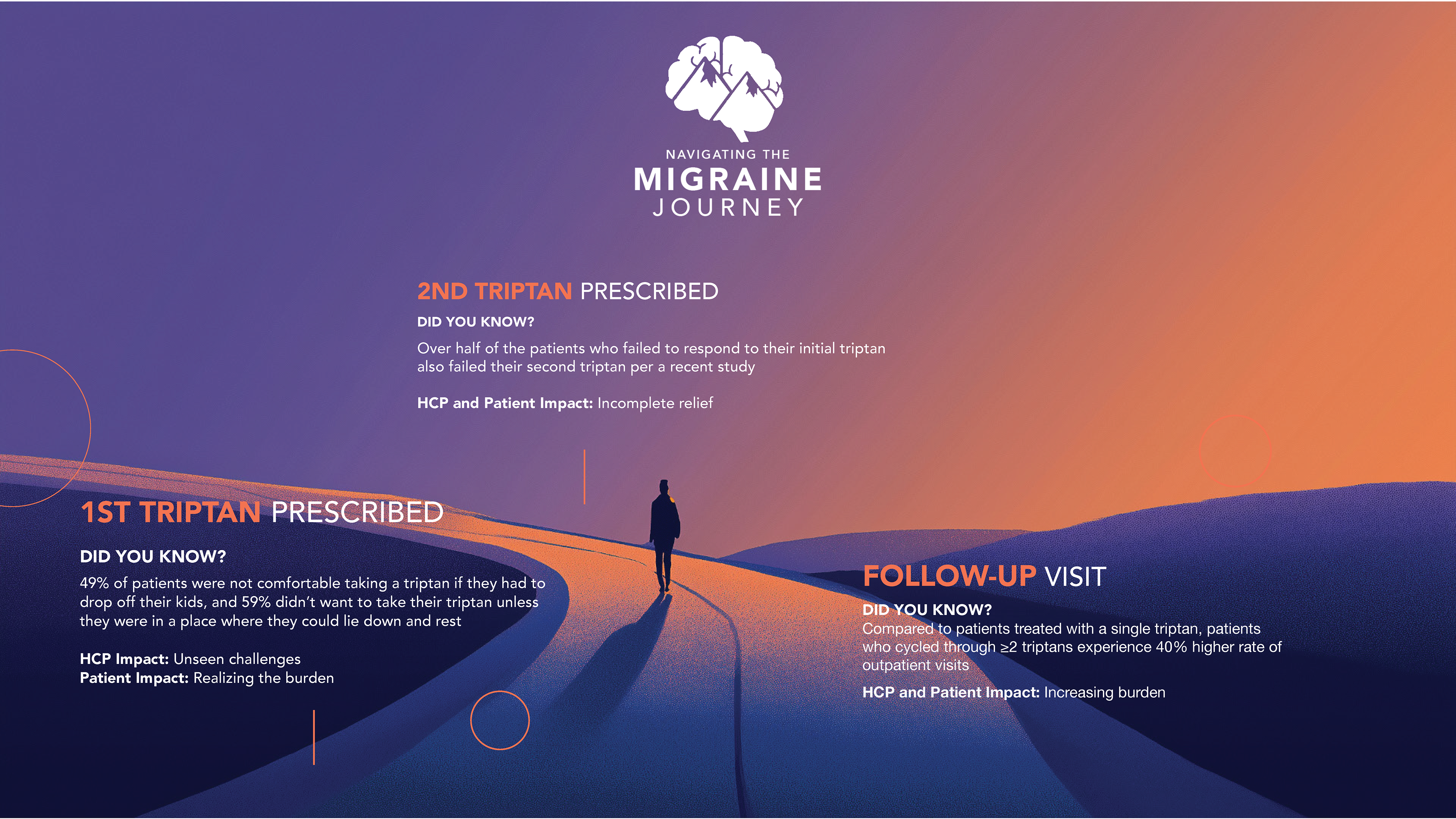 For many patients, triptans represent the first step in treatment — but often not the final answer. Lifestyle limitations, inconsistent efficacy, and the need to “wait it out” can create friction that goes unspoken in clinical conversations. Visualizing that plateau in the journey reframes the need for alternative solutions.